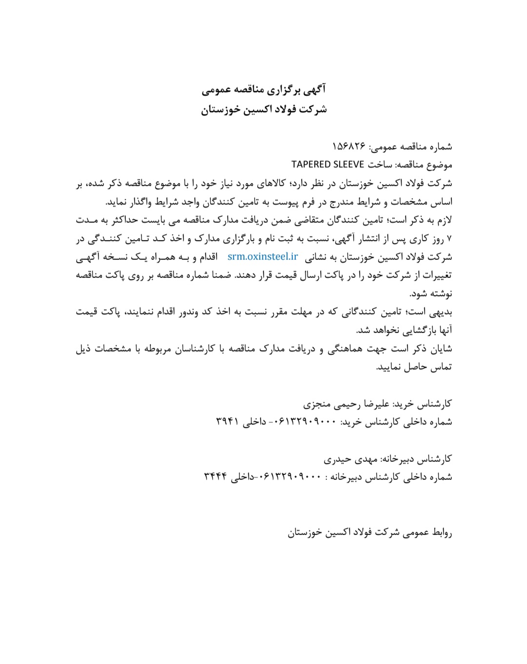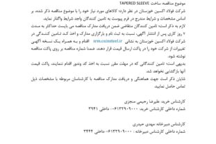 - آگهی مناقصه ساخت TAPERED SLEEVE