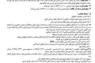 شماره مناقصه عمومی: ۱۴۹۰۱ موضوع مناقصه: HIGH PRESSURE HOSE شرکت فولاد اکسین خوزستان در نظر دارد، کالاهای مورد نیاز خود را با موضوع مناقصه ذکر شده، بر اساس مشخصات و شرایط مندرج در فرم پیوست به تامینکنندگان واجد شرایط واگذار نماید. از تامینکنندگان واجد شرایط حقیقی و حقوقی دعوت میگردد مدارک صلاحیت میبایست حداکثر تا […]آگهی مناقصه دور مرحله ای طراحی، ساخت، حمل، نصب، تست و راه اندازى جرثقيل سقفى ۵ تن