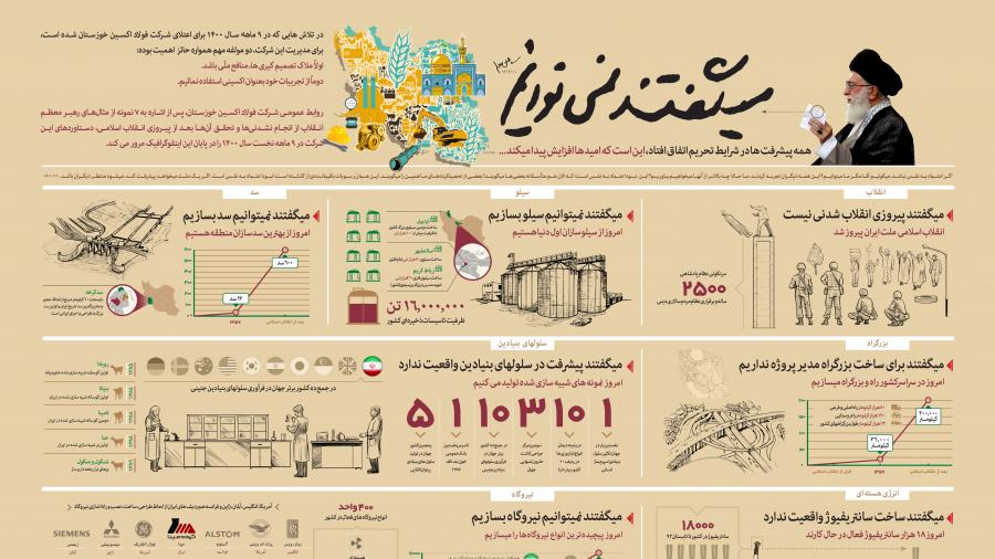 روابط عمومی شرکت فولاد اکسین خوزستان، پس از اشاره به ۷ نمونه از مثالهای رهبر معظم انقلاب از انجام نشدنیها و تحقق آنها بعد از پیروزی انقلاب اسلامی، دستاوردهای این شرکت در ۹ ماهه نخست سال ۱۴۰۰ را در پایان این #اینفوگرافیک مرور می کند.