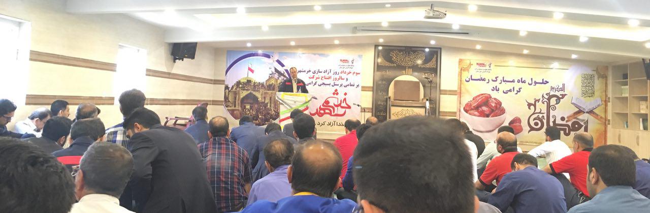 به گزارش روابط عمومی شرکت فولاد اکسین خوزستان مهندس محمود پور مدیر عامل محترم شرکت گفت روز آزادسازی خرمشهر یک روز ملی است روزی که یک ملت با همه وجود در مقابل استکبار ایستاد و به فرموده امام راحل خرمشهر را خدا آزاد کرد.