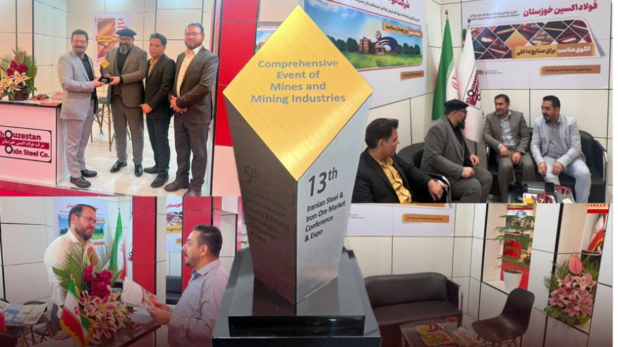 تندیس سیزدهمین همایش و نمایشگاه چشم انداز صنعت فولاد و سنگ آهن ایران و پنجمین نمایشگاه چشم انداز صنایع فلزات غیر آهنی ایران و فناوری های وابسته به شرکت فولاد اکسین خوزستان تعلق یافت.