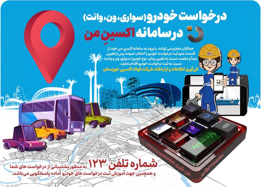 امکان ثبت درخواست خودرو (سواری،وَن و وانت)، در نسخه جدید سامانه «اکسینِ من» شرکت فولاد اکسین خوزستان فراهم شد.