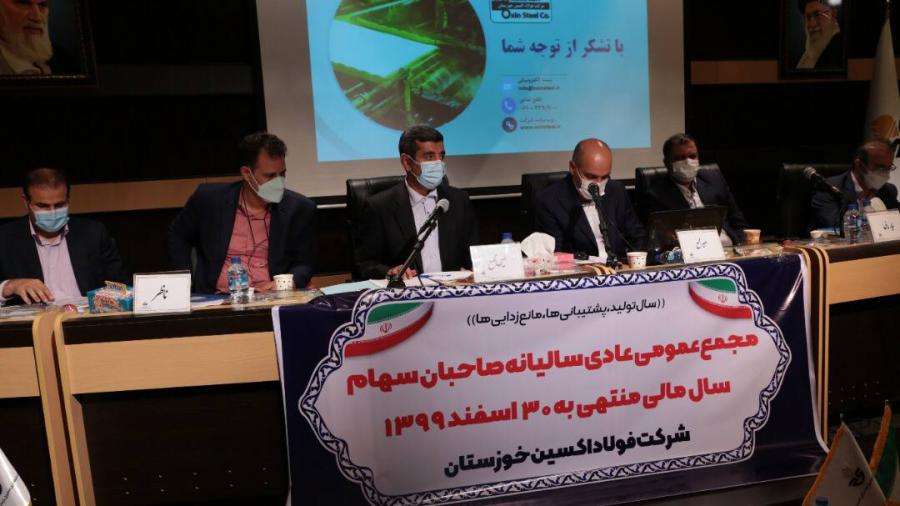 در این جلسه ابتدا گزارش عملکرد هیات مدیره شرکت در سال ۱۳۹۹ توسط امین آسیابان سرپرست شرکت تشریح شد. وی با اشاره به دستاوردهای فولاد اکسین در سال گذشته شامل تسویه بدهی ها و حضور در پروژه های بزرگ خطوط لوله کشور گفت، دستیابی به موفقیت های بیشتر در گرو همدلی و کارهای جمعی است که با تلاش مضاعف در جهت تولید ممکن خواهد شد.