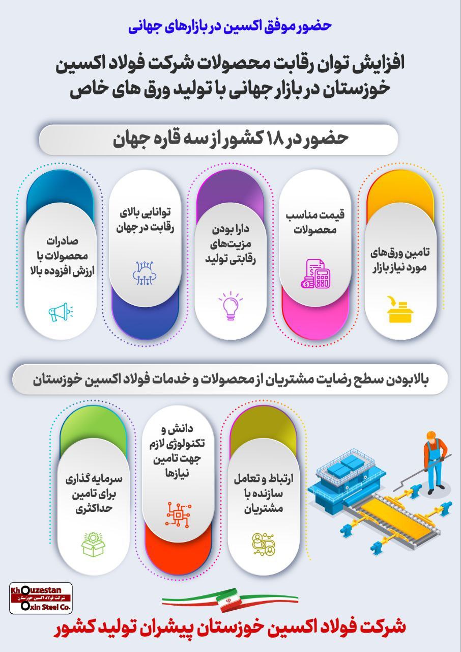 اینفوگرافیک از حضور موفق شرکت فولاد اکسین در بازارهای جهانی