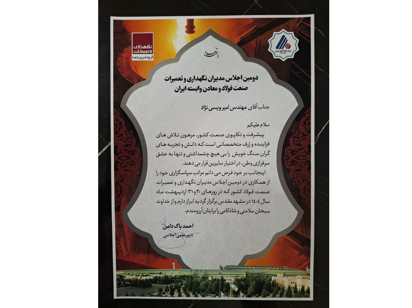 در پایان این اجلاس،لوح تقدیر به امین ویسینژاد بهعنوان نماینده شرکت فولاد اکسین خوزستان اهدا شد.