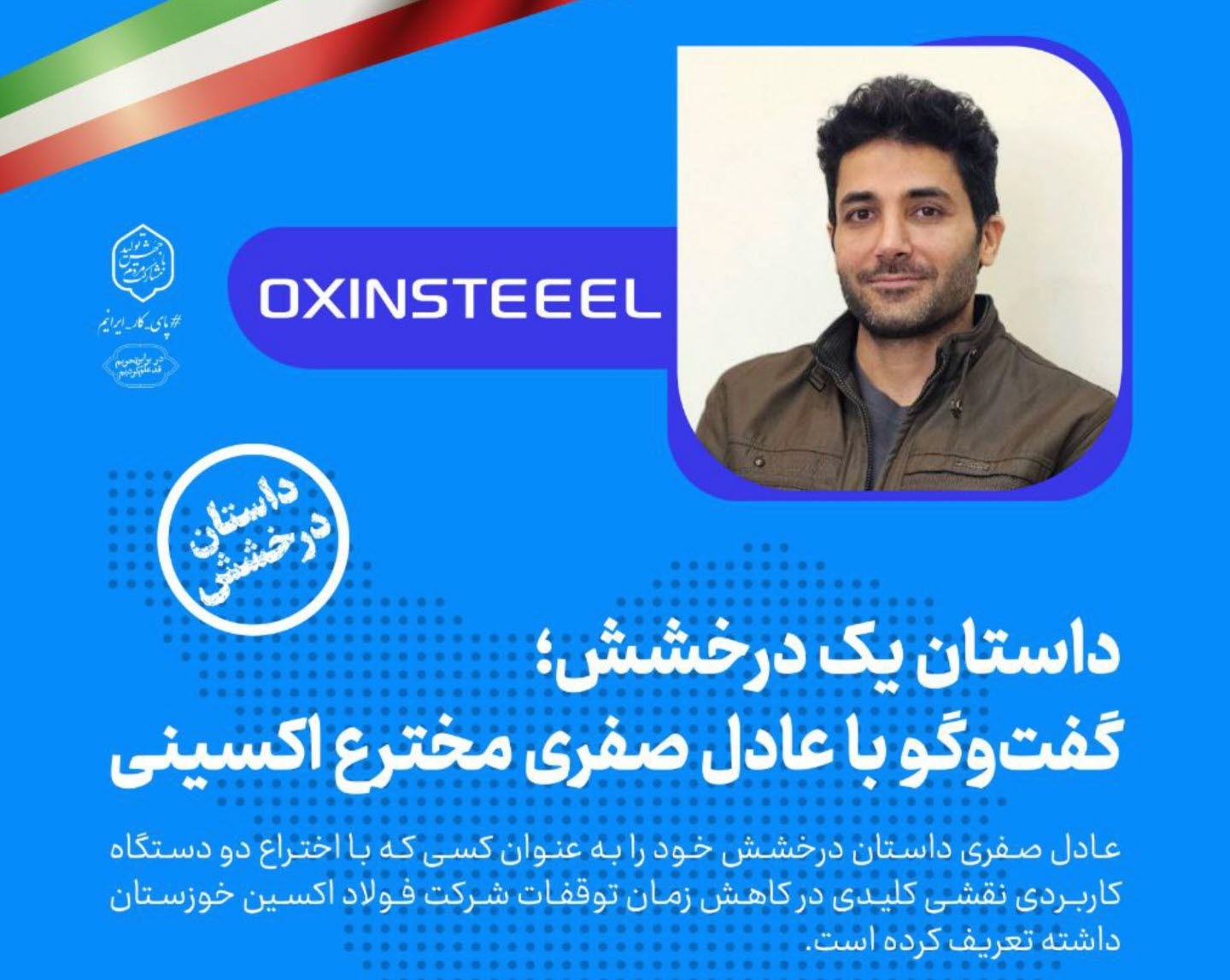 عادل صفری داستان درخشش خود را به عنوان کسی که با اختراع دو دستگاه کاربردی نقشی کلیدی در کاهش زمان توقفات شرکت فولاد اکسین خوزستان داشته تعریف کرده است.