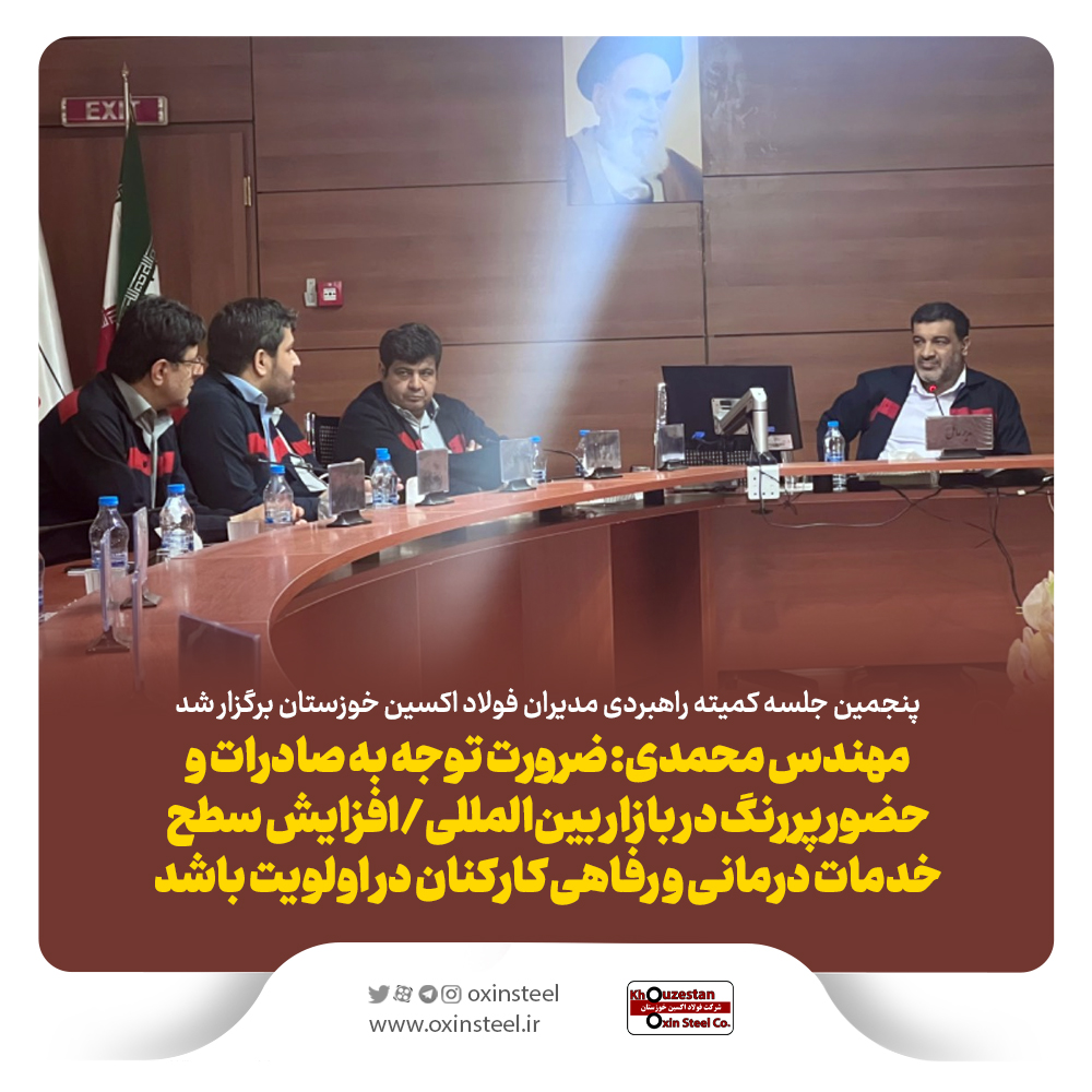 مدیرعامل شرکت فولاد اکسین خوزستان پنجمین جلسه کمیته راهبردی شرکت، توجه به صادرات و حضور پررنگ در بازار بین المللی را ضروری دانست و توجه به معیشت و افزایش سطح خدمات درمانی و رفاهی کارکنان تاکید کرد.
