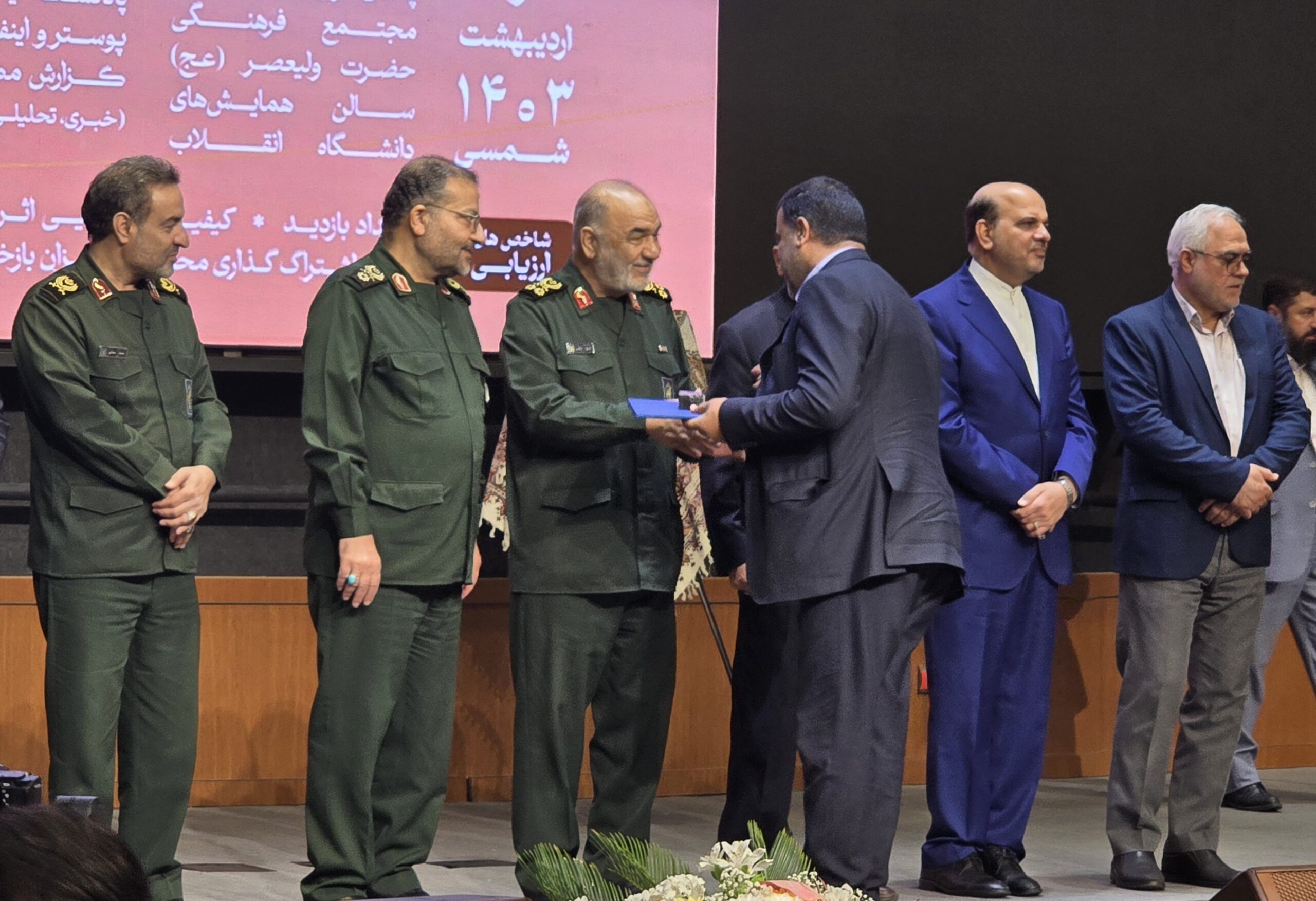 به گزارش روابط عمومی شرکت فولاد اکسین خوزستان؛ همزمان با برگزاری اختتامیه نخستین جشنواره جام رسانه امید در تهران، سردار سرلشکر سلامی فرمانده کل سپاه پاسداران انقلاب اسلامی از علی محمدی مدیرعامل شرکت فولاد اکسین خوزستان تقدیر بعمل آورد.